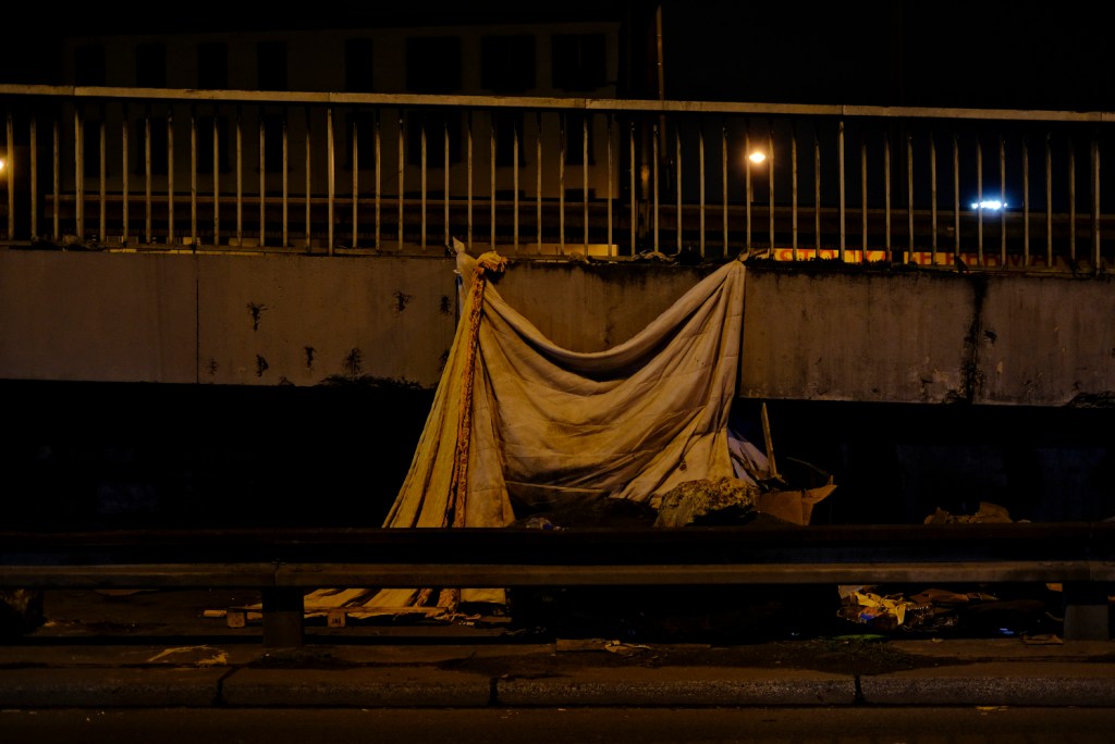 Le mince ressac fait danser les feuilles mortes et des sacs plastiques dodelinent sous la lumière niaise de quelques blafards lampadaires.