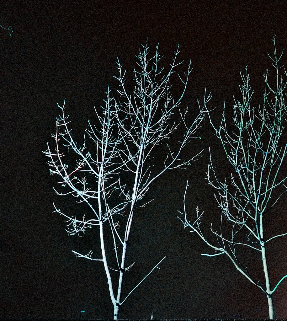 Au printemps, tes reflets crépitent et irisent ta surface et je vois parfois sur ta nappe fébrile les arbres en pixels.